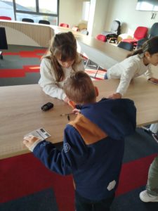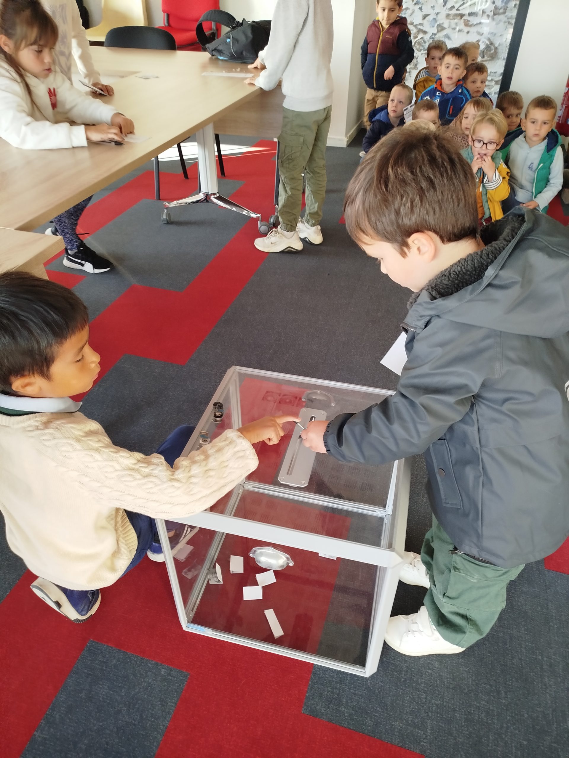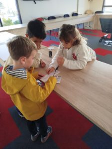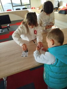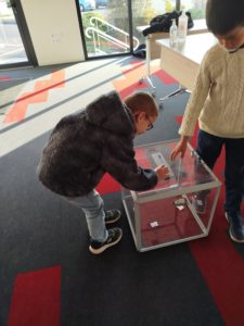 Belle expérience! Nous en avons profité pour regarder la photo du Président de la République, les drapeaux de la France et de l’Europe. A notre retour en classe, nous avons écouté la Marseillaise (pour certains, il s’agit de la musique du match de football!!!), puis nous avons procédé au dépouillement.