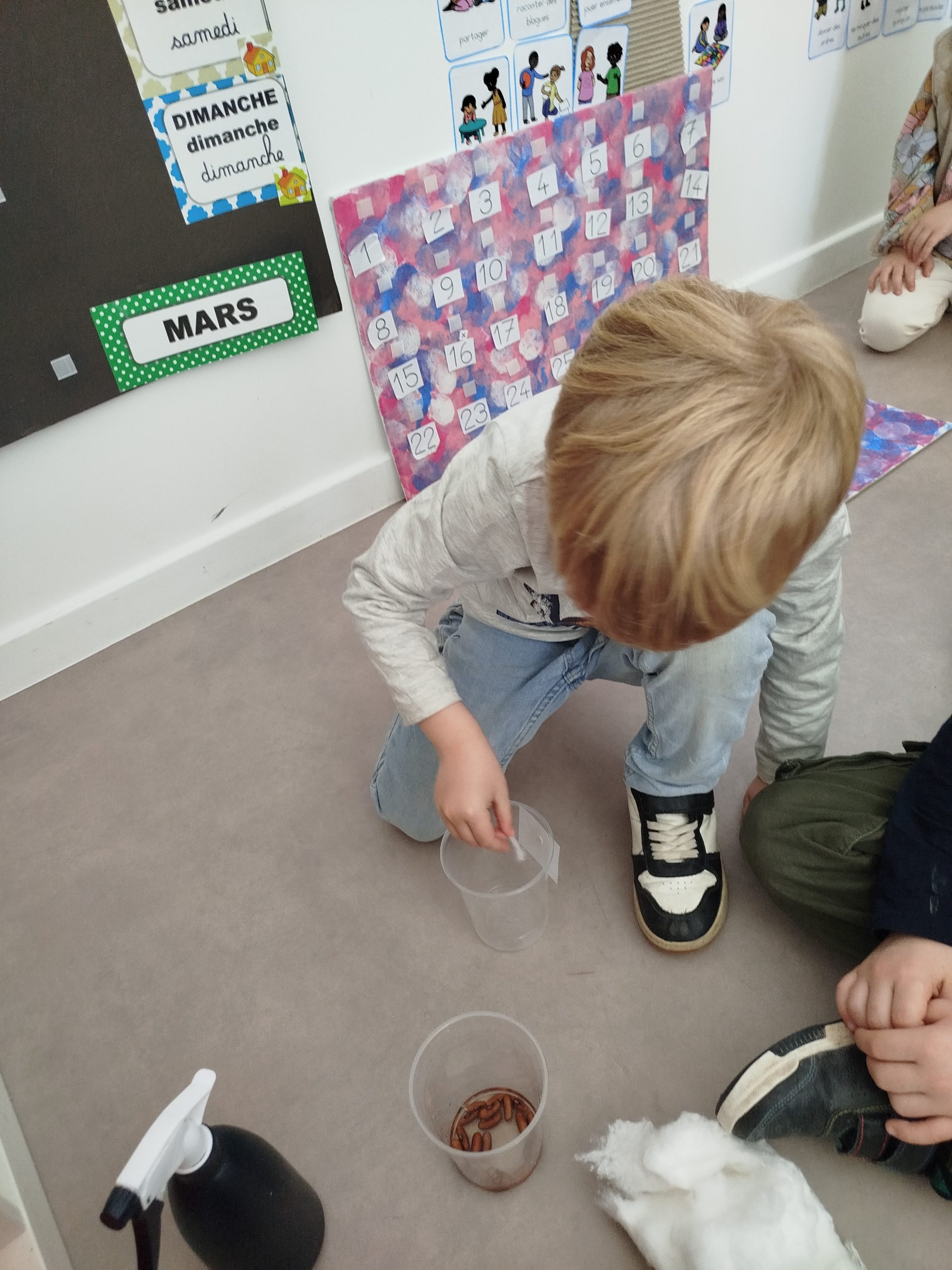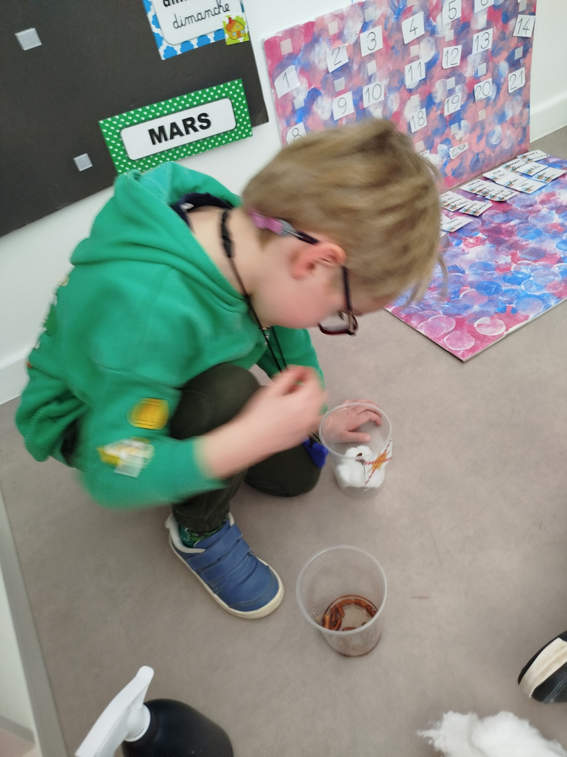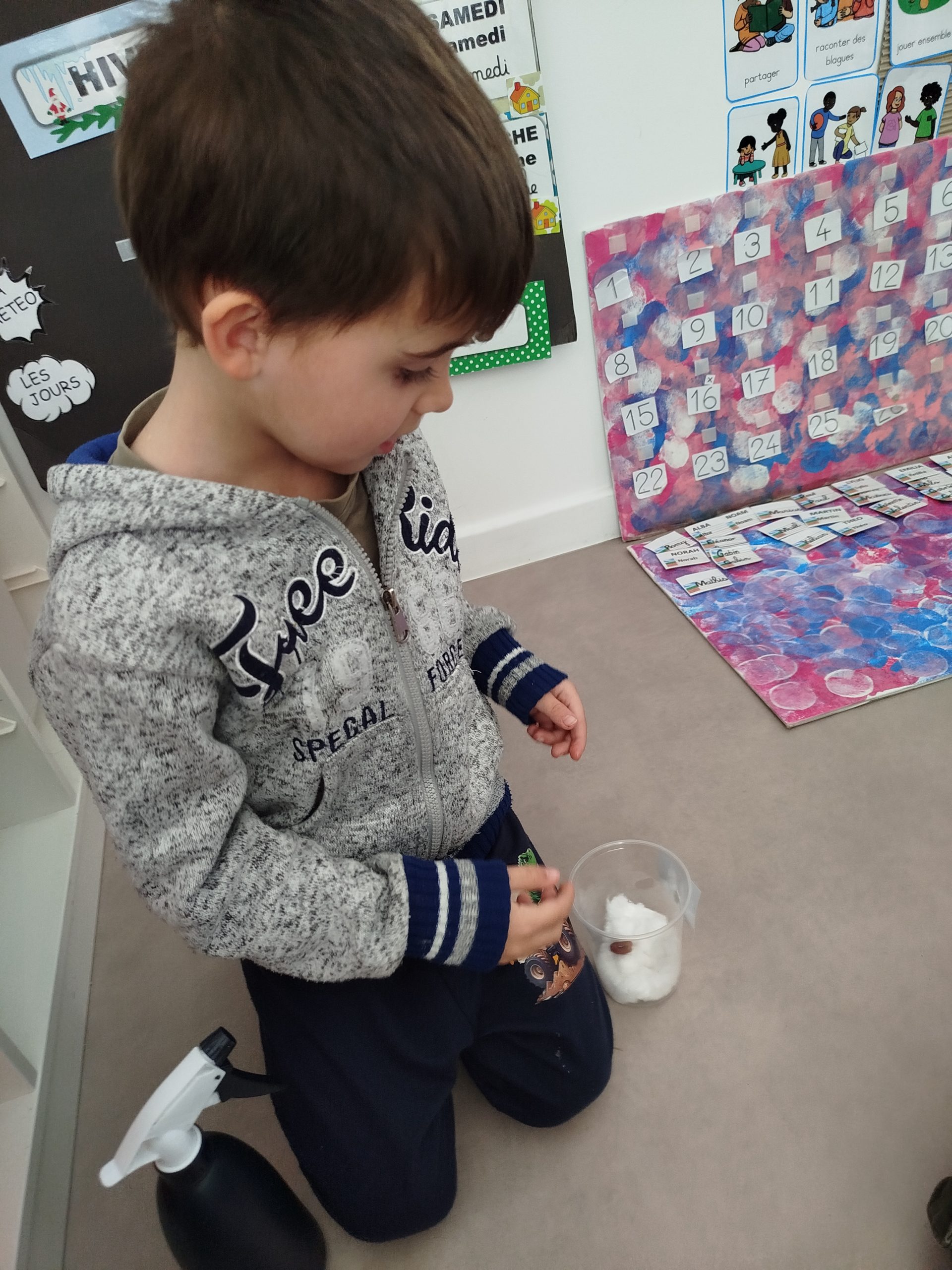 Maintenant, régulièrement, nous regarderons l’évolution de nos graines. Ainsi, nous saurons de quoi une graine a besoin pour grandir.