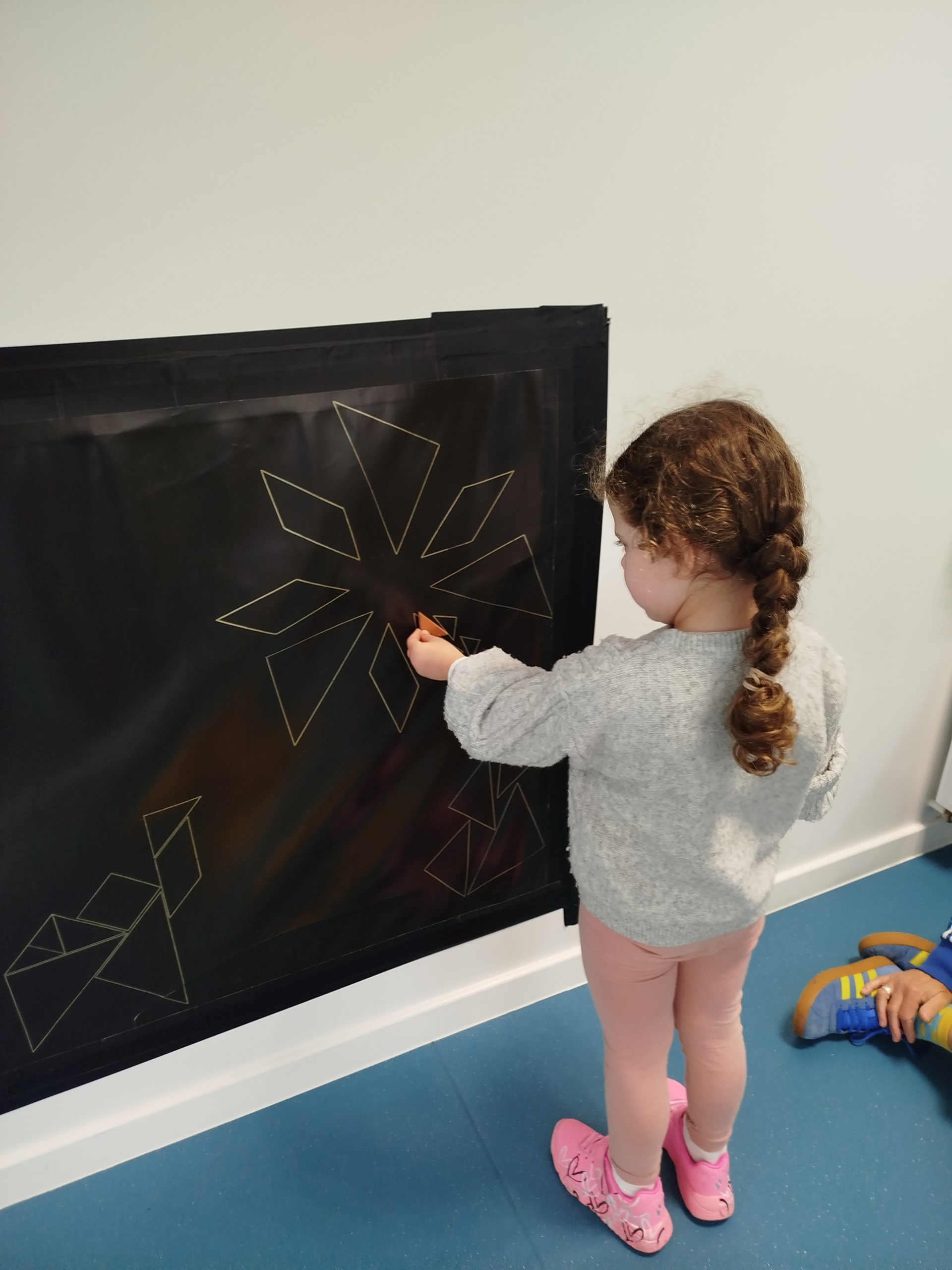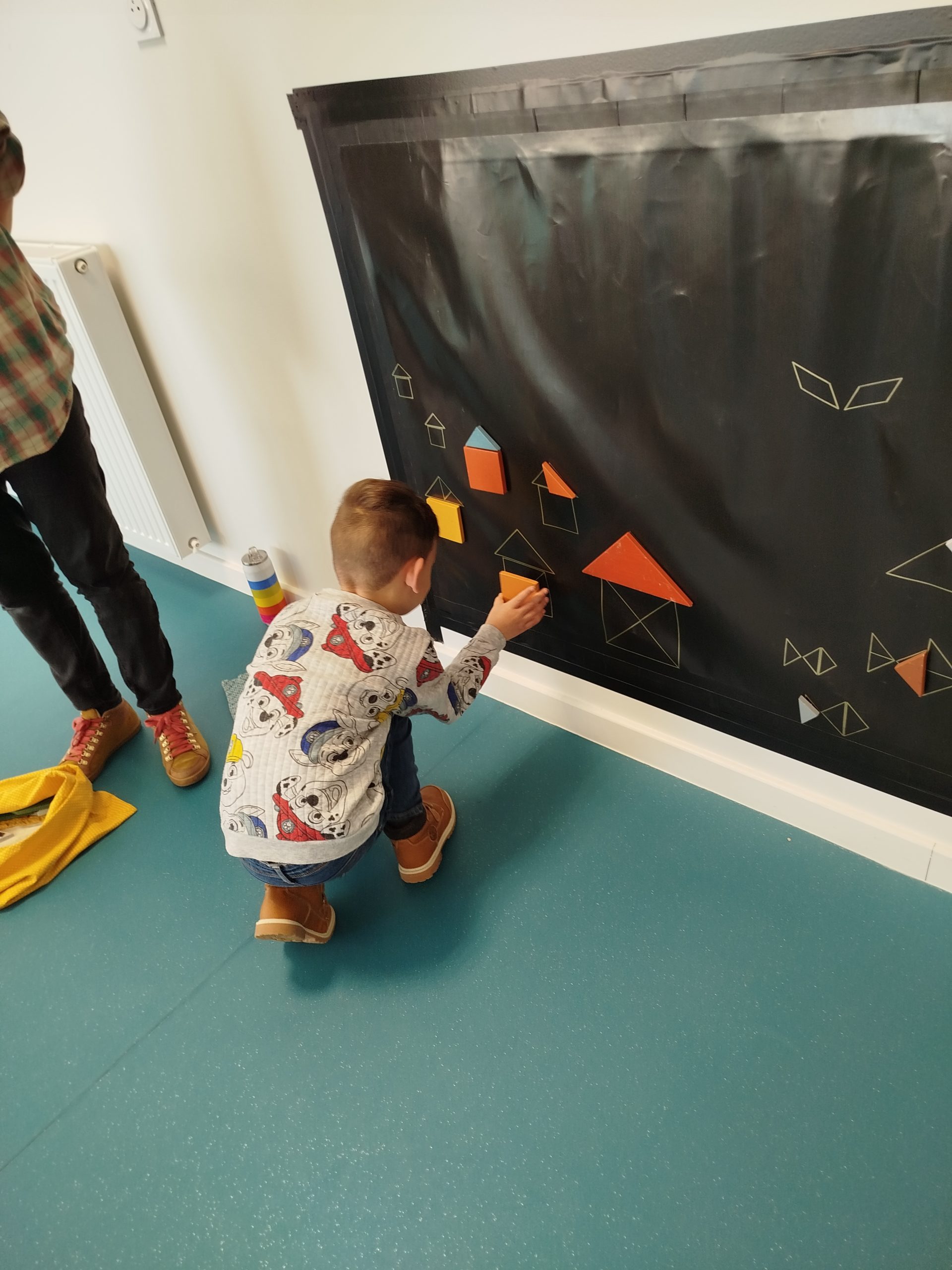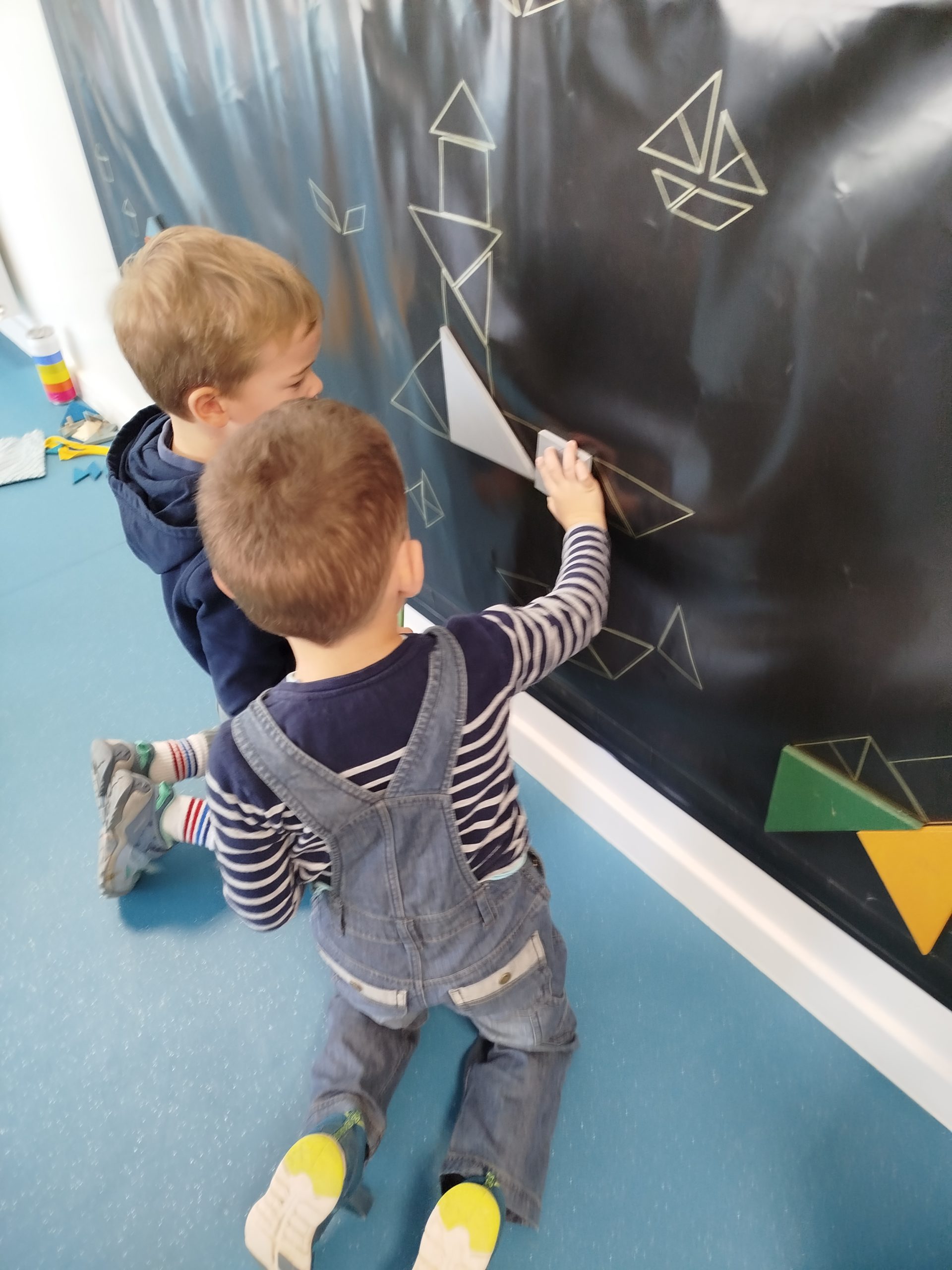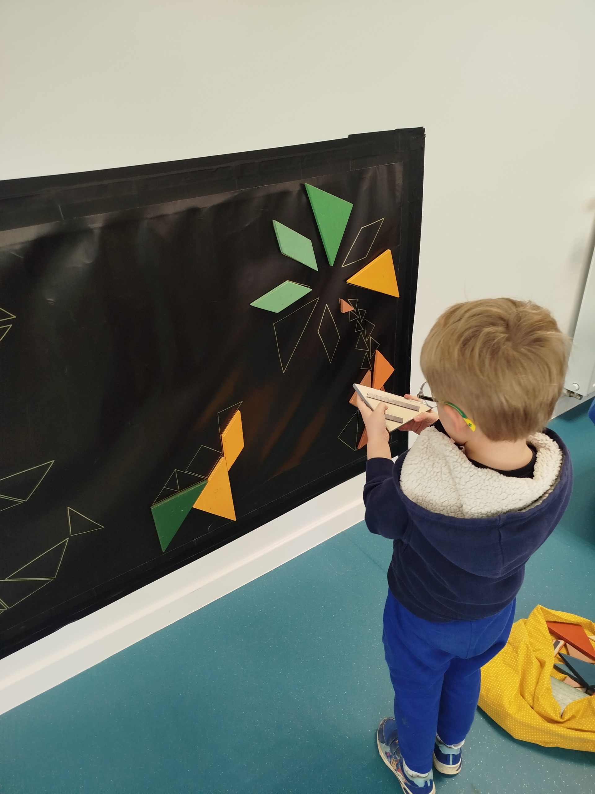 Jeudi 13 novembre, les MS et GS ont pu rencontrer deux artistes de la compagnie Boi’brut, en lien avec le spectacle “Karl” vu avant les vacances à Montrelais dans le cadre du festival “Ce soir, je sors mes parents”. Elles ont fait reformuler les grandes étapes du spectacle. Elles étaient très contentes car les élèves se souvenaient de tous les détails. Ensuite, comme Karl “personnage tangrams”, les élèves ont eu la possibilité de reconstituer une fresque, représentant les personnages de l’histoire à l’aide de morceaux de tangrams (la baleine, le phare, le palmier, les mouettes,…)