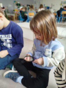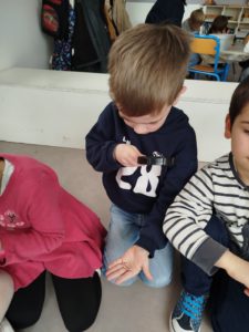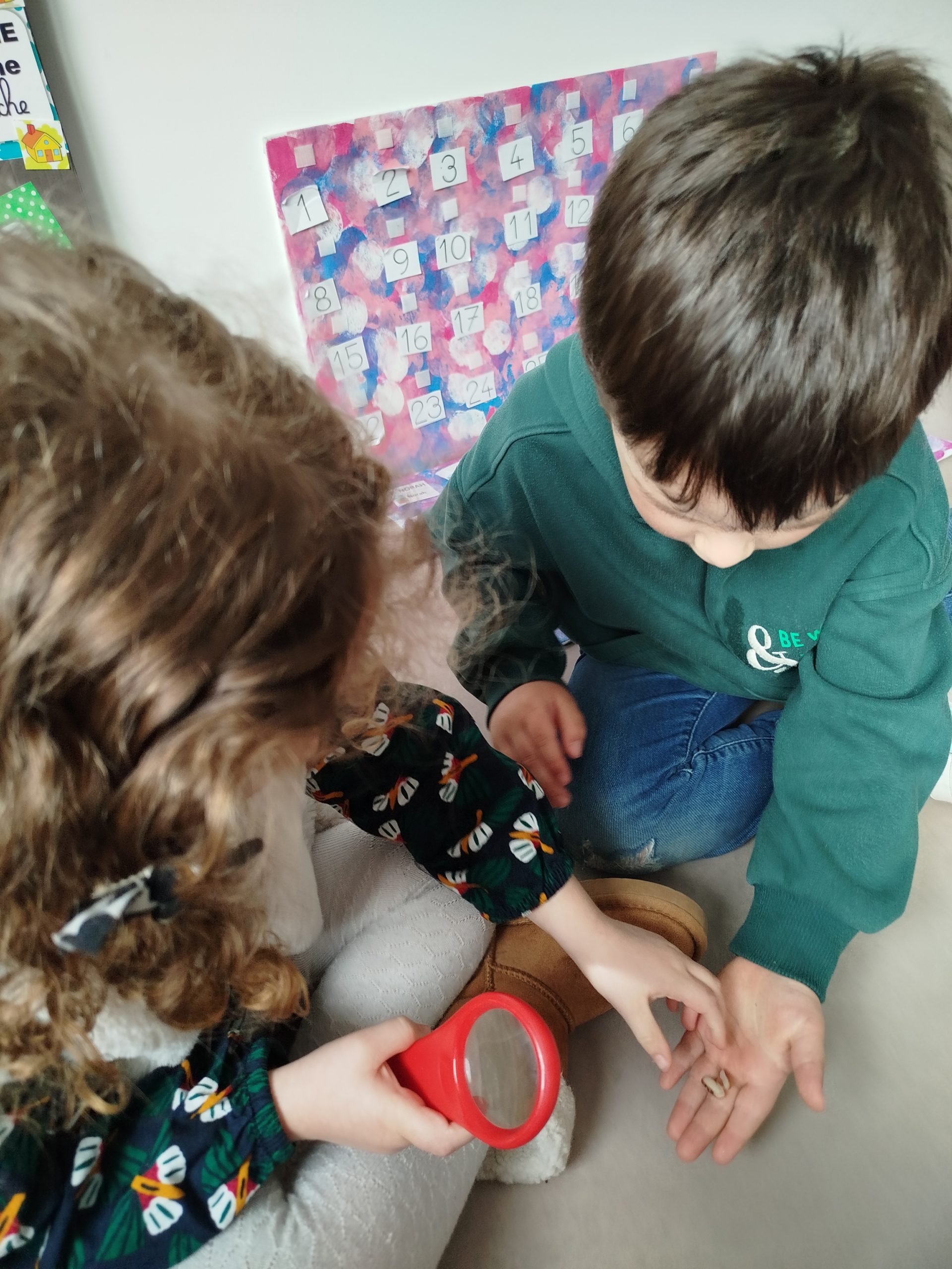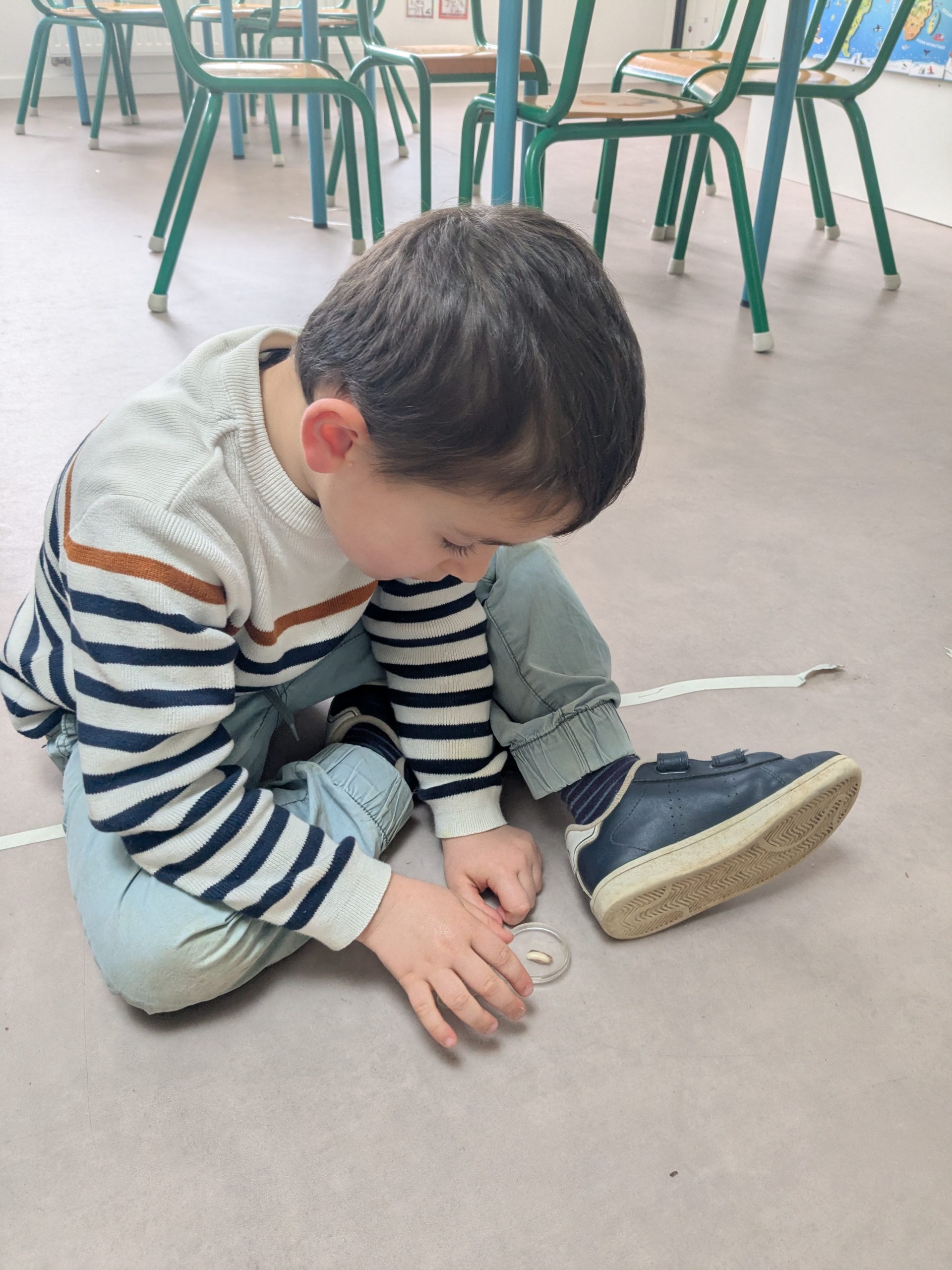 By Nadège VINCENT22 mars 2026PS-MS En lien avec l’album, “Jack et le haricot magique”, nous avons découvert la graine du haricot. A l’aide de la loupe, nous avons regardé les deux cotylédons, le tégument et la plantule.