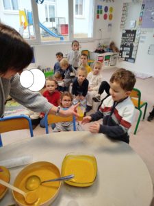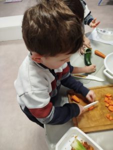 Nous avons eu l’occasion de faire une soupe aux légumes: